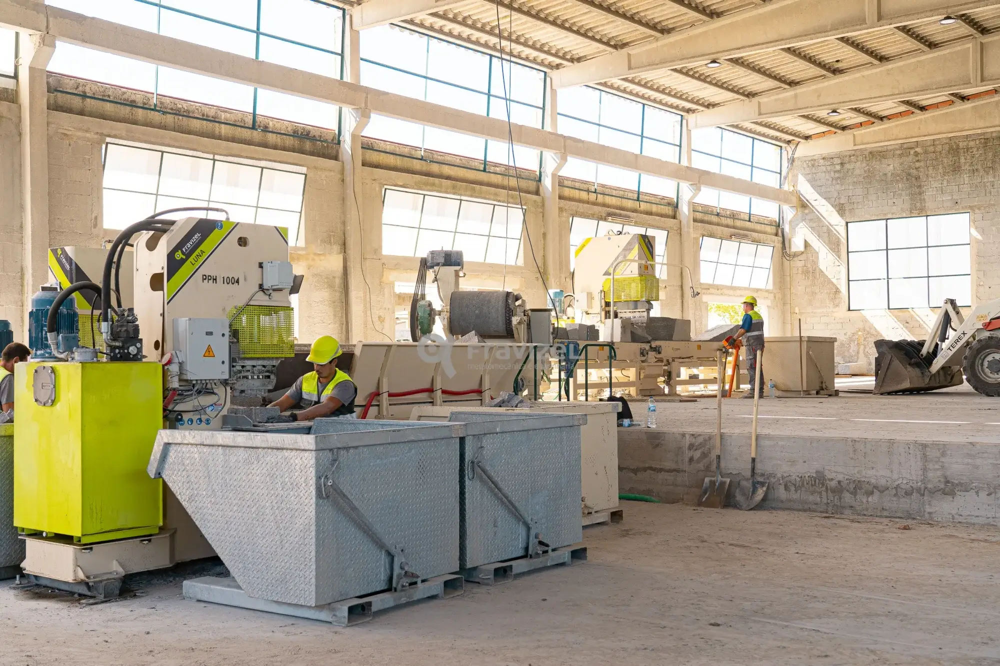 Trabajamos con fabricantes especializados como FRAVIZEL, con soluciones contrastadas en aplicaciones reales de cizallado hidráulico de piedra natural en cantera.